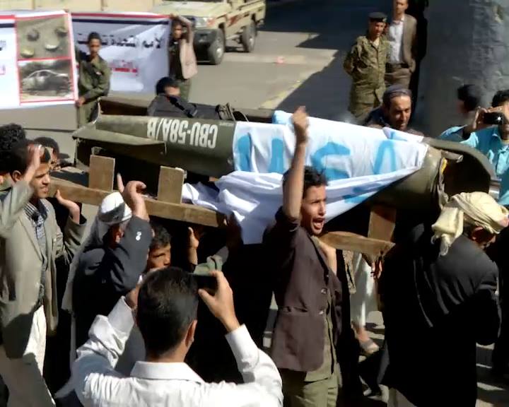 نظَّم طلاب وأبناء مديرية معين اليوم الأحد 10 يناير 2016 ، أمام مبنى الأمم المتحدة بالعاصمة صنعاء وقفةً احتجاجيةً منددةً بإلقاء طيران العدوان للقنابل العنقودية على مديريتهم.