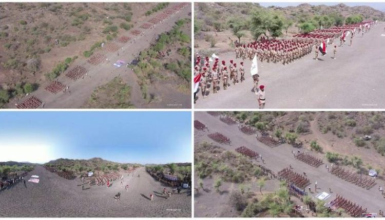 وشهد الاحتفال عروضاً عسكرية للخريجين البالغ عددهم ثلاثة آلاف جندي، عكسوا فيها مهاراتهم العسكرية التي تلقوها واستعدادهم التضحية في سبيل الله وحماية الدين والوطن من أطماع الغزاة والمحتلين.