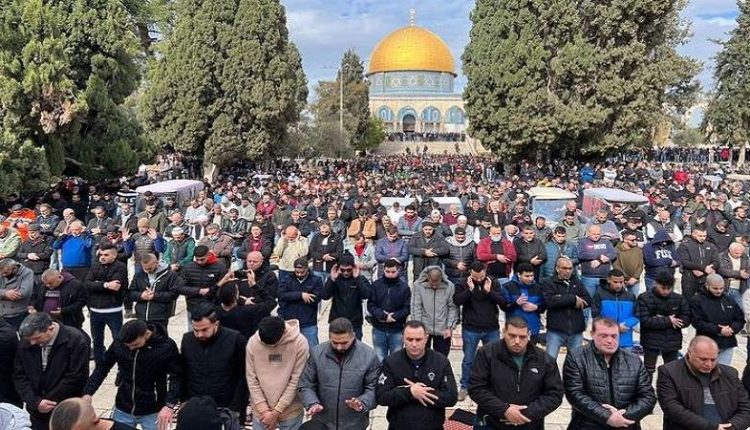 عشرات الآلاف من الفلسطينيين يؤدون صلاة الجمعة في رحاب المسجد الأقصى المبارك