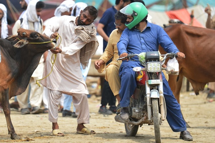 وبدأ المسلمون استعدادات عيد الأضحى في مدينة كراتشي الساحلية الباكستانية حيث بدأ إنزال الماشية بواسطة رافعة من حظائرهم الموجودة على الأسطح.