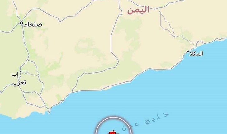 زلزال عنيف يضرب هذه المكان في خليج عدن بقوة 5 ريختر وعمق 10 كيلومتر