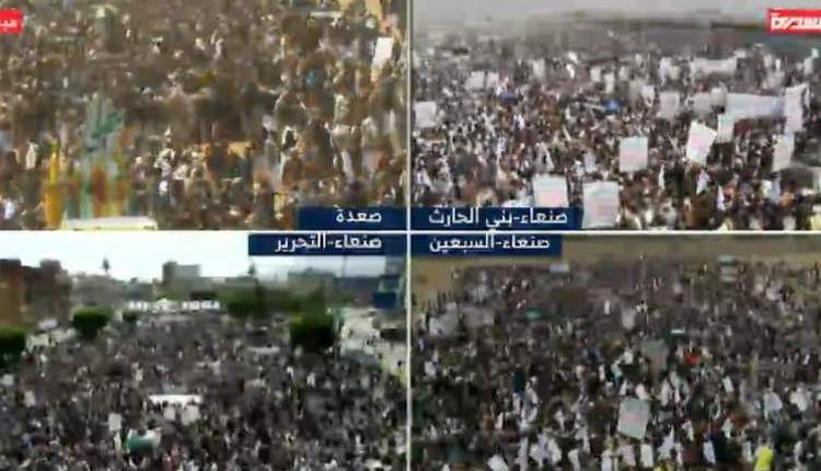 وفي محافظة مأرب خرجت المسيرات في ساحات الجوب، وبيت الدماجي بمديرية صرواح، وبراقش بمديرية مجزر، والمثعف بمديرية بدبدة وباب حره بمديرية حريب القراميش.