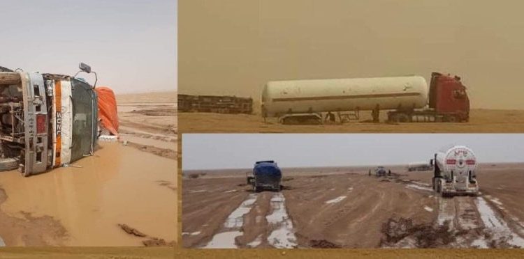 وأوضحت الهيئة في بيان لها : أن قطع الطرق تسبب بمعاناة كبيرة لسائقي ومالكي القاطرات وشاحنات نقل البضائع، وآخرها انجراف العديد منها جراء السيول بصحراء مأرب ما تسبب بخسائر مادية كبيرة لمالكي تلك القاطرات وشاحنات نقل البضائع .
