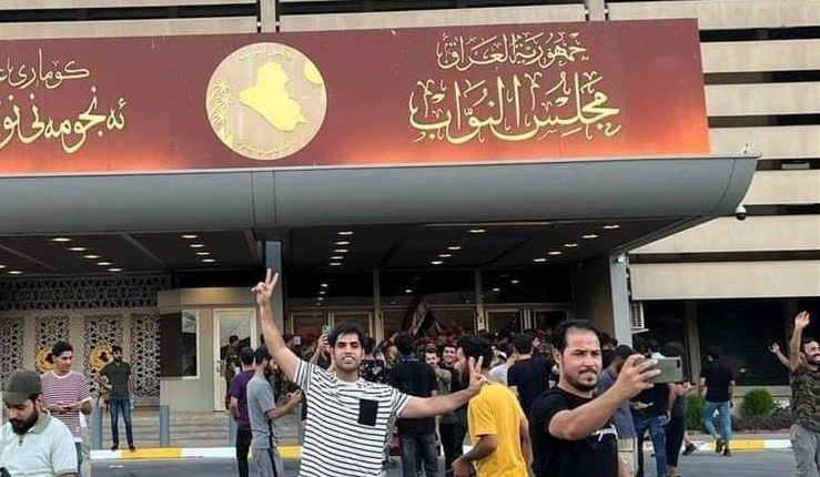 اقتحم المئات من أنصار زعيم التيار الصدري في العراق مقتدى الصدر، مساء اليوم الأربعاء، مبنى البرلمان في المنطقة الخضراء في العاصمة بغداد، احتجاجا على مرشح “الإطار التنسيقي” لرئاسة الوزراء.