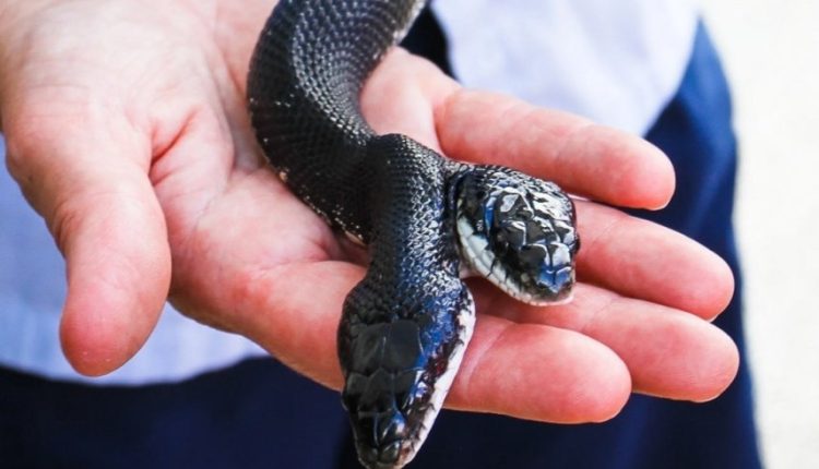 بالصور.. أفعى نادرة ذات رأسين تفاجئ الجميع