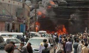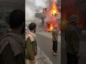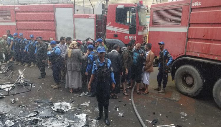 شاهد بالصور .. إخماد حريق في شارع القصر بأمانة العاصمة ” تفاصيل “