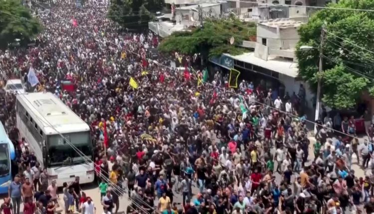 شارك عشرات آلاف الفلسطينيين، يوم الأحد، في موكب تشييع جنازة القيادي في حركة الجهاد الإسلامي “خالد منصور، واثنين من رفاقه، الذين استشهدوا في غارة اسرائيلية برفح جنوب قطاع غزة.