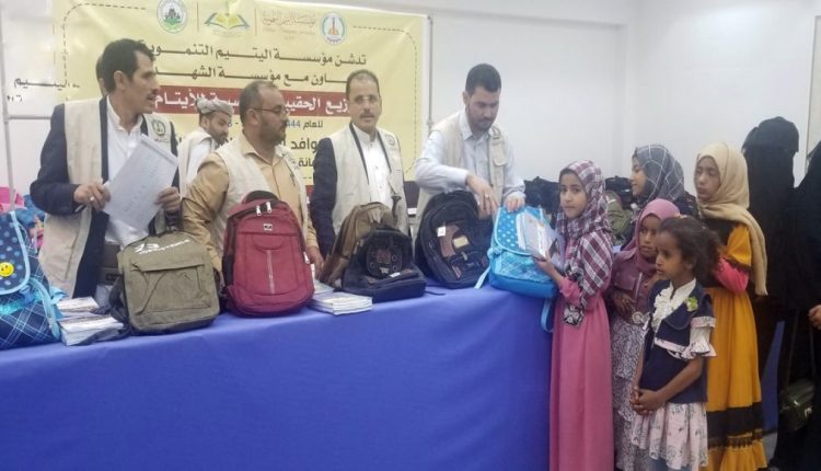 توزيع أكثر من ألفين حقيبة مدرسية و500 منهج دراسي للطلاب الأيتام وأبناء الشهداء في عدة محافظات