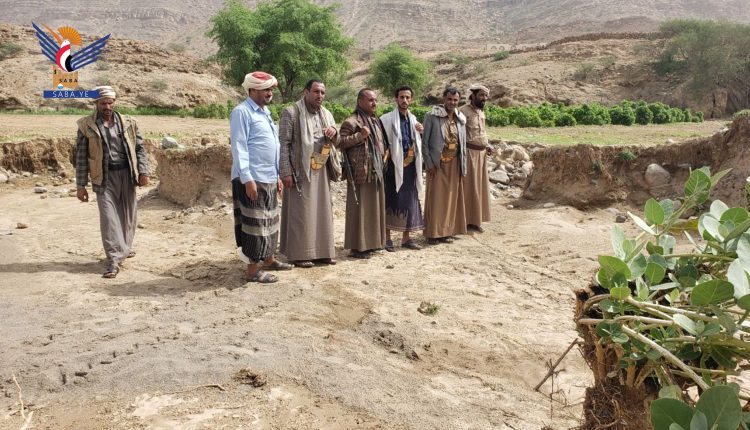 الاطلاع على حجم الأضرار التي خلفتها السيول في منطقة المحجزة بمديرية صرواح
