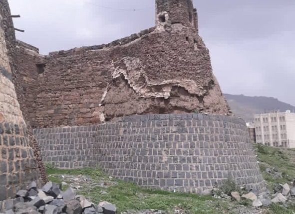تضرر قصر غمدان بصنعاء القديمة جراء الأمطار الغزيرة