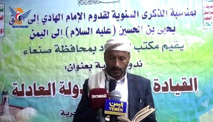 عقدت بمحافظة صنعاء اليوم، ندوة ثقافية بذكرى قدوم الإمام الهادي إلى اليمن، بعنوان” القيادة الفاعلة والدولة العادلة”، نظمها مكتب الإرشاد بالمحافظة.