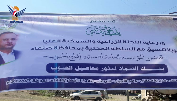 افتتحت المؤسسة العامة لتنمية وإنتاج الحبوب، اليوم في وادي الاجبار وقاع الحباب بمديرية سنحان محافظة صنعاء، بنك الصماد لبذور محاصيل الحبوب، بالتعاون مع اللجنة الزراعية والسمكية العليا وبالتنسيق مع السلطة المحلية بالمحافظة.