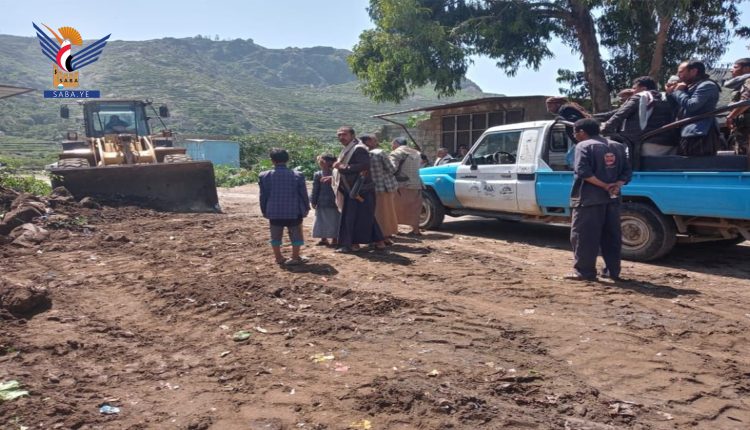 بدء تسوية ورفع العوائق والأضرار التي خلفتها السيول في عدد من الطرق بمديرية مناخة