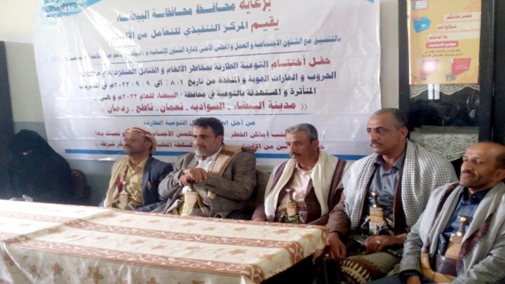 وأشاد محافظ البيضاء عبدالله ادريس بالدور الإنساني الذي يقوم به المركز التنفيذي للتعامل مع الألغام في إيصال رسائل التوعية بمخاطر الألغام والقنابل العنقودية ومخلفات الحروب.