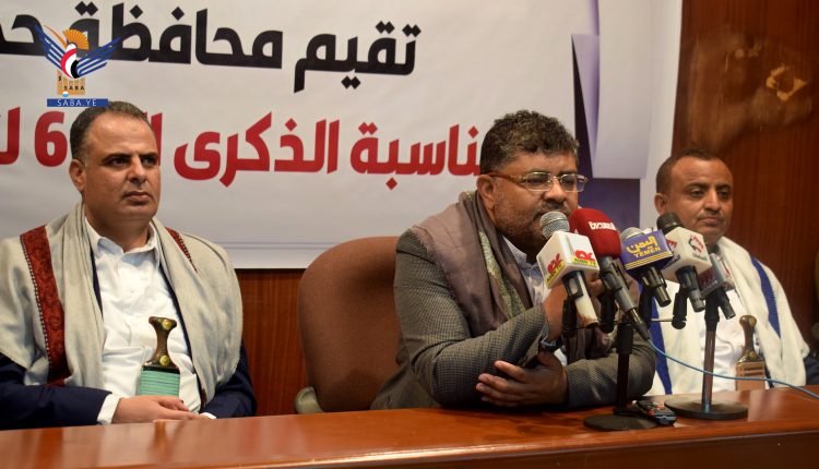 وتابع بالقول: “من حجة الصمود أتينا لنحيي مع ثوارها وأبناءها عيد الثورة”.. مؤكدا أن الثوار الحقيقيين هم أبناء المذهب الزيدي الذين يرفضون الظلم على مر الزمن، مهما كان جبروته، وأن شرارة الثورة قامت من محافظتي حجة وصنعاء.