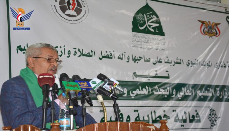 وفي الفعالية، اعتبر وزير التعليم العالي والبحث العلمي، حسين حازب، الاحتفال بذكرى المولد النبوي محطة توعوية لتزوّد من سيرة الحبيب المصطفى “النور والطهر، ومكارم الأخلاق، ومحطة تعبوية للشعب اليمني، خصوصاً وهو يخوض معركته دفاعاً عن الأرض والعرض في مواجهة قوى الطغيان والاستكبار العالمي”.