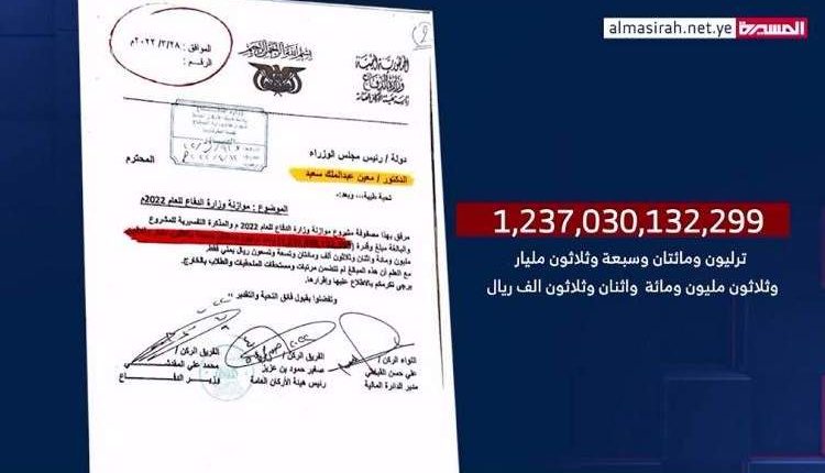 وأظهرت الوثائق أن موازنة ما تسمى “وزارة الدفاع” في حكومة المرتزقة للعام 2022 بلغت ترليون و237 مليار ريال، توزعت على النحو التالي: