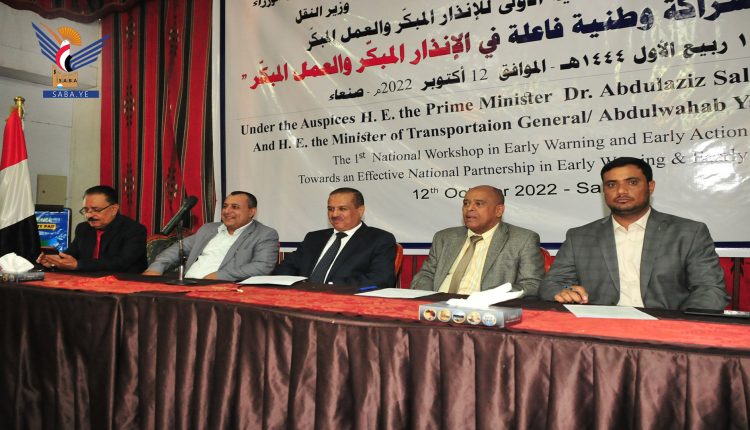 نظّمت هيئة الطيران المدني والأرصاد قطاع الأرصاد الجوية، اليوم، في صنعاء الورشة الوطنية الأولى للإنذار المبكر والعمل المبكر بمخاطر الكوارث الطبيعية، بمشاركة عدد من الجهات ذات العلاقة.