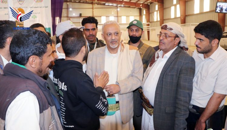 عضو السياسي الأعلى الوهباني والمحافظ البخيتي يتفقدان المعرض الزراعي الأول بذمار