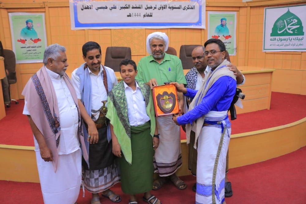 وفي الفعالية بحضور وكيل المحافظة محمد حليصي، ثمن نجل الفقيد معتز علي الأهدل اهتمام القيادة الثورية والمجلس السياسي الأعلى والسلطة المحلية بالمحافظة بحفظ تراثه الإنشادي.