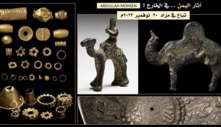 وكشف الباحثُ اليمني المختص في الآثار، عبدالله محسن، عن عرض أكثر من 40 قطعة أثرية ذهبية وبرونزية من تاريخ اليمن القديم المسروقة والمنهوبة من قبل تحالف العدوان وحكومة المرتزِقة، للبيع في مزاد بالعاصمة البريطانية لندن بتاريخ 30 نوفمبر القادم.