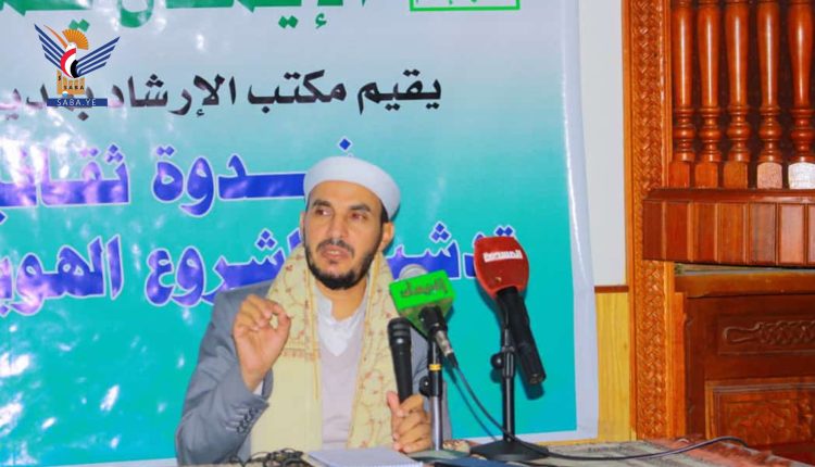 وفي الفعالية التي حضرها مدير فرع مصلحة الأحوال المدنية بالأمانة العميد هاشم إبراهيم، أشار عضو رابطة علماء اليمن العلامة خالد موسى، إلى خطورة الحرب الناعمة وأساليبها والاستهداف المباشر للشباب والمرأة اليمنية في هويتهم الإيمانية.