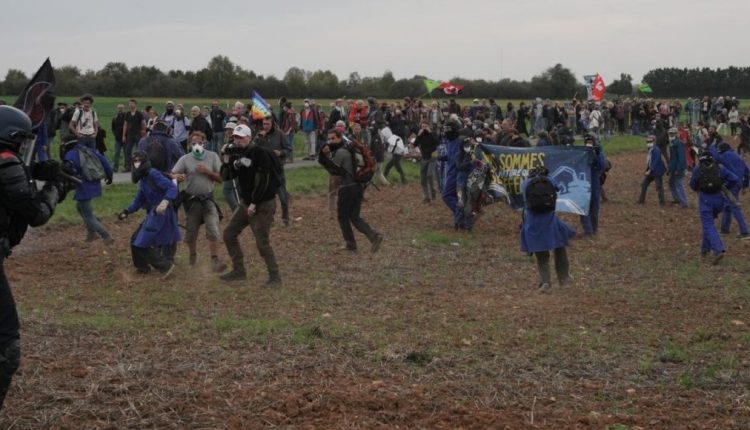 أصيب نحو 100 شخص في صدامات عنيفة بين الدرك ومتظاهرين بيئيين احتجوا على إنشاء خزَّان مياه للري الزراعي غرب فرنسا، أمس السبت.