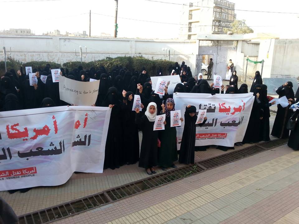 نفذت نساء مدينه ذمار اليوم الثلاثاء 2 فبراير 2016 ، وقفة احتجاجية رافضة للعدوان السعودي الأمريكي تحت شعار (أمريكا تقتل الشعب اليمني) .