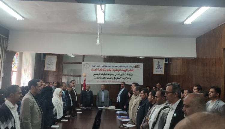 دشنت الهيئة الوطنية العليا لمكافحة الفساد، اليوم، العمل بمدونة السلوك الوظيفي وأخلاقيات العمل في وحدات الخدمة العامة.
