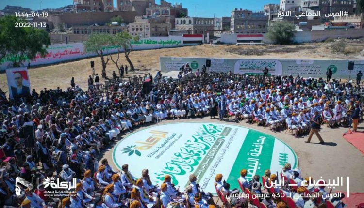 أبناء محافظتي البيضاء وأبين يحتفلون بزفاف 430 عريساً وعروس.. “صور وتفاصيل”