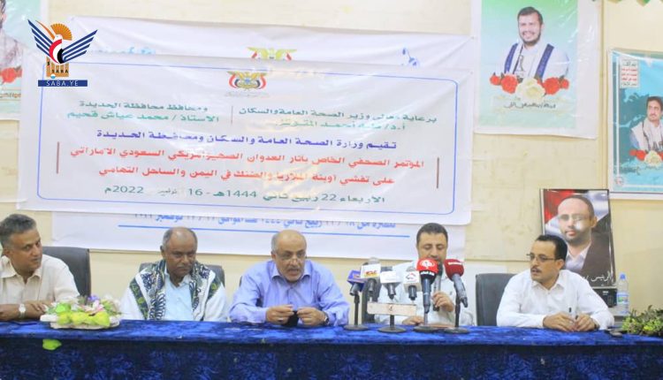 نظمّت وزارة الصحة العامة والسكان والسلطة المحلية بمحافظة الحديدة اليوم مؤتمراً صحفياً حول آثار العدوان الأمريكي السعودي الإماراتي على تفشي أوبئة الملاريا وحمى الضنك في اليمن والساحل التهامي.