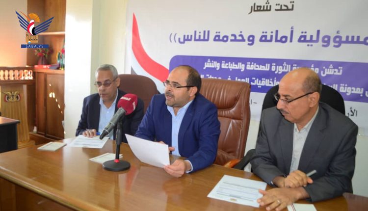 دشّنت مؤسسة الثورة للصحافة والطباعة والنشر اليوم، العمل بمدونة السلوك الوظيفي وأخلاقيات العمل في ديوان عام المؤسسة وفروعها بالمحافظات.