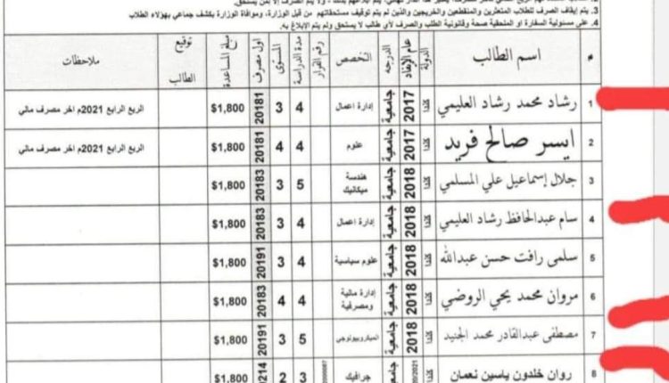 الكشف عن نصيب العليمي و البركاني من المنح الدراسية