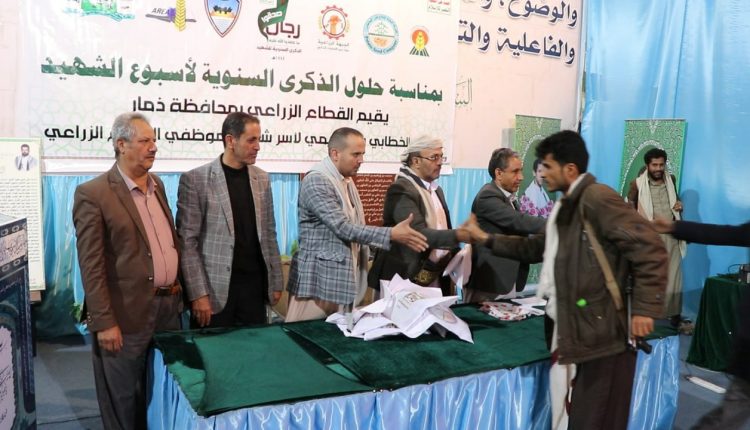 نظم القطاع الزراعي بمحافظة ذمار اليوم، فعالية خطابية وتكريمية إحياء للذكرى السنوية للشهيد.