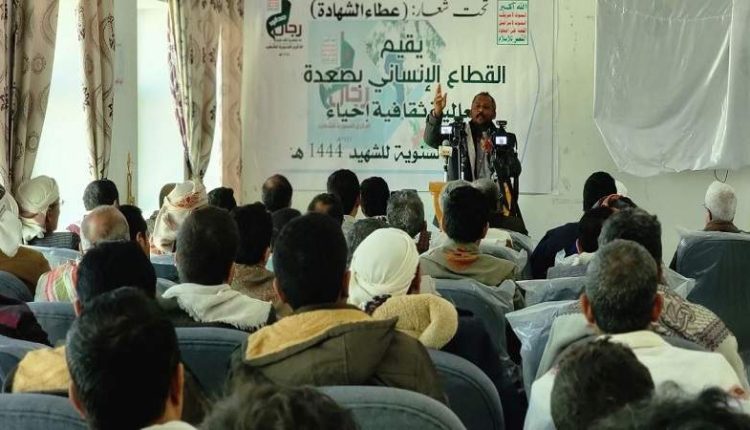 نظم القطاع الإنساني في محافظة صعدة اليوم الأحد، فعالية ثقافية تحت شعار “عطاء الشهادة” إحياءً للذكرى السنوية للشهيد 1444هـ.