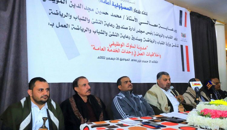 دشنت وزارة الشباب والرياضة وصندوق رعاية النشء والجهات التابعة لها، اليوم، العمل بمدونة السلوك الوظيفي وأخلاقيات العمل في وحدات الخدمة العامة تحت شعار “المسؤولية أمانة “.