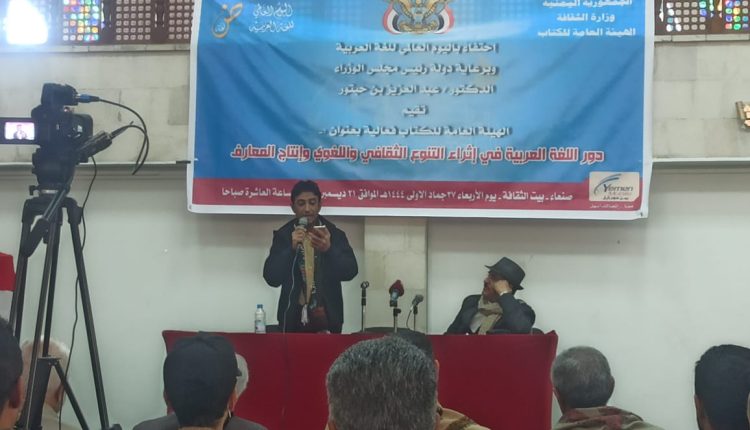 وفي الفعالية، التي حضرها نائب وزير الثقافة، محمد حيدرة، نوه رئيس الهيئة العامة للكتاب، عبد الرحمن مراد، باحتفال العالم في 18 ديسمبر من كل عام باليوم العالمي للغة العربية من منطلق اعتبارها أحد أهم أركان التنوع الثقافي للبشرية.