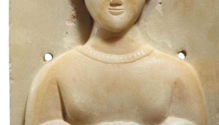 وقال الناشطون الذين نشروا صورة لتلك القطعة التي تعود للقرن الأول قبل الميلاد وهي مستطيل الشكل ، منحوت بنقش بارز مع امرأة واقفة ترتدي سترة طويلة على شكل حرف A مع ياقة مهدبة ، ويداها مشبوكتان عند خصرها ، مرتدية سوارين على كل معصم ، قلبها – وجه على شكل عيون كبيرة منتفخة على شكل لوز ، التلاميذ مثقوبون بعمق ، الحاجبين أخاديد رفيعة ، الحاجب المقوس يندمج مع جسر الأنف الطويل المثلث ، بفم صغير وذقن مستدير ، من المحتمل أن يكون الشعر المنتصف في الأصل منتهية من الجبس ، مثقوبة للتثبيت فوق كل كتف