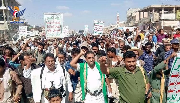 وأكدت الحشود الجماهيرية أن الحصار والتجويع إحدى وسائل الحرب الأمريكية على الشعب اليمني.. معتبرة ذلك جريمة موصوفة في مواثيق وقوانين الأمم المتحدة بجريمة الإبادة الجماعية والشاملة.
