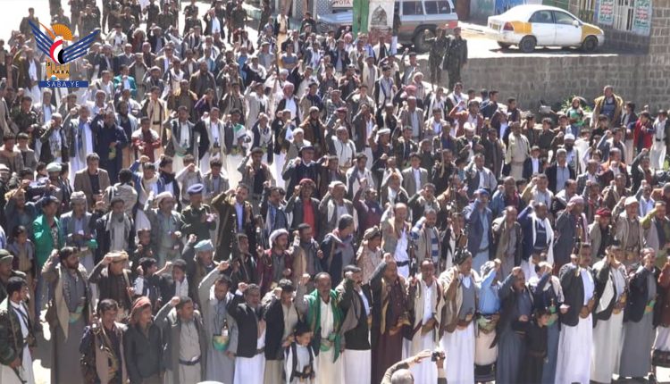 وأكد المشاركون أن العدوان الأمريكي السعودي، يسعى من خلال حصاره لتركيع الشعب اليمني وإذلاله وإرغامه على التبعية، لكن الشعب اليمني قرر أن يحدد مصيره بنفسه ويأبى أن يخضع ويكون تحت وصايا قوى الاستكبار العالمي.