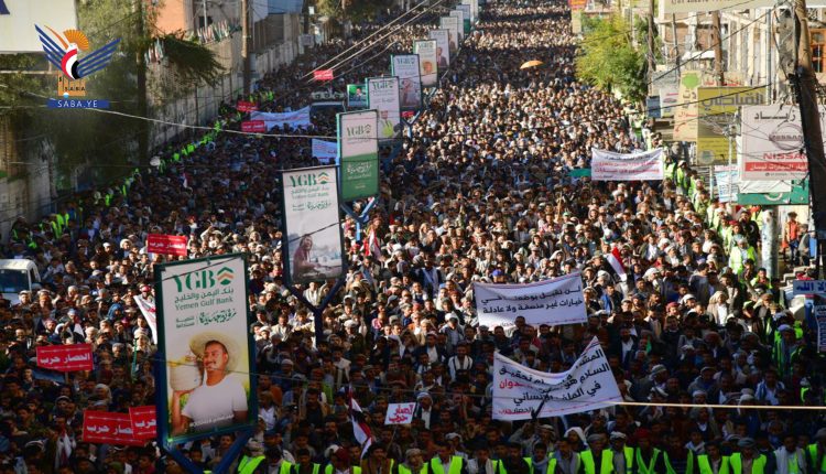 كما حذّر بيان المسيرة الشركات والكيانات والأنظمة، التي تتعامل مع مرتزقة العدوان، بأن كل إجراءاتها باطلة ولا أصل لها، وهي بيع ممن لا يملك لمن لا يستحق.