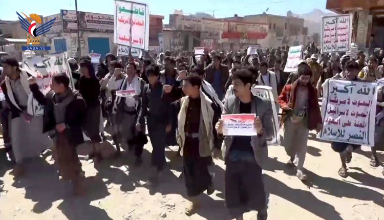 وأكد المشاركون في المسيرة أن القضية الفلسطينية كانت وستظل القضية الأساسية والمركزية للأمة .. منددين بالجرائم الصهيونية التي ترتكبها عصابات يهودية بحق الشعب الفلسطيني، واقتحامها للمسجد الأقصى .