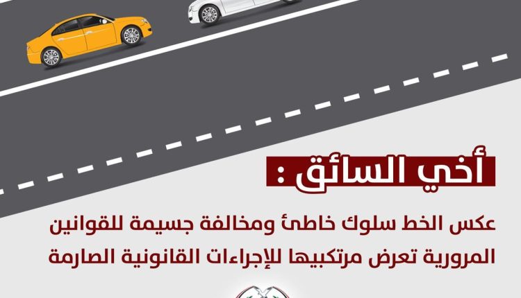 أخبار محلية أخي السائق: عكس الخط سلوك خاطئ ومخالفة جسيمة للقوانين المرورية، تعرض مرتكبيها للإجراءات القانونية الرادعة أخي السائق: عكس الخط سلوك خاطئ ومخالفة جسيمة للقوانين المرورية، تعرض مرتكبيها للإجراءات القانونية الرادعة.. #واقصد_في_مشيك #الادارة_العامة_للمرور #الإعلام_المروري_اليمني Share