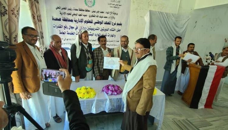 اختتم المعهد الوطني للعلوم الإدارية بمحافظة صعدة اليوم دورتين تدريبيتين في مجالي رفع القدرات والمهارات لمدراء الموارد البشرية بوحدات الخدمة العامة، وتعليم أساسيات الحاسب الآلي، بتمويل من السلطة المحلية.