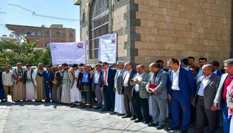 اتحاد الغرف التجارية ينظم وقفة احتجاجية للتنديد بقرار حكومة المرتزقة رفع سعر الدولار الجمركي
