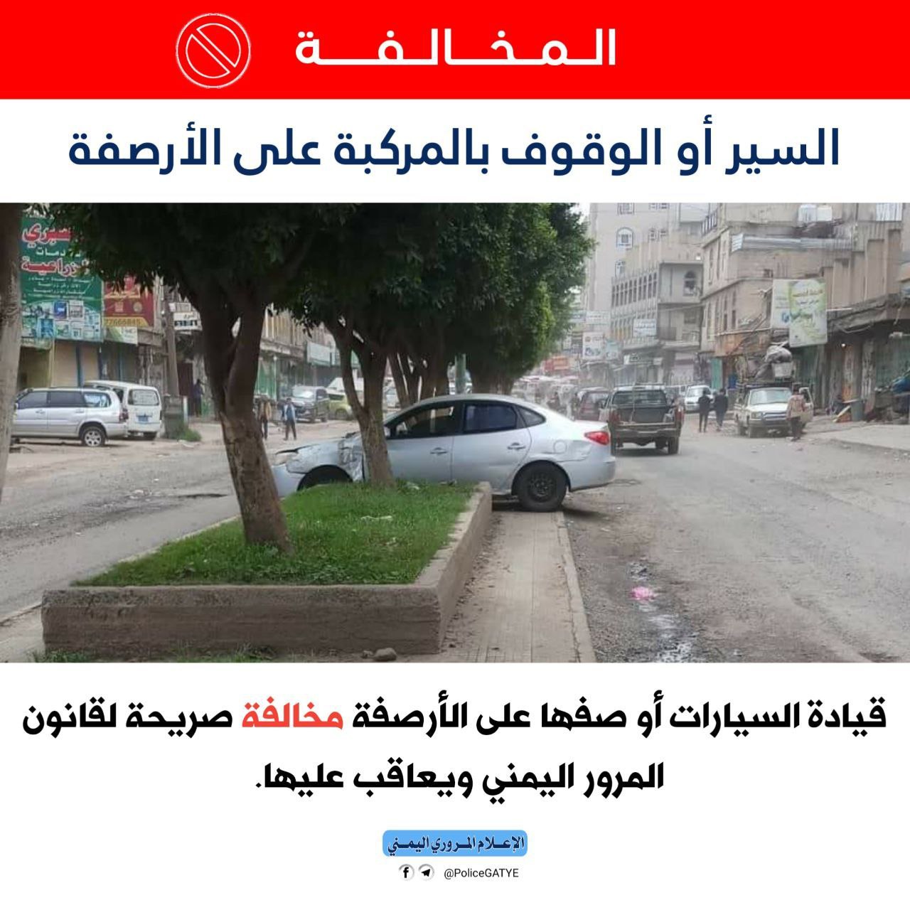 أخبار محليةصور أخي السائق.. قيادة السيارة أو صفها على الأرصفة مخالفة صريحة لقانون المرور اليمني ويعاقب عليها أخي السائق.. قيادة السيارة أو صفها على الأرصفة مخالفة صريحة لقانون المرور اليمني ويعاقب عليها يمانيون../ # حملة التوعية المرورية# شرطة المرور# واقصد في مشيك Share
