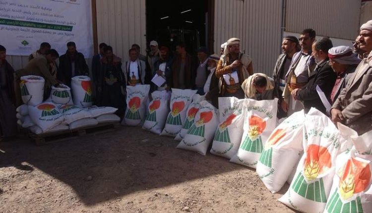 توزيع بذور بقوليات وحبوب على المزارعين بمديرية عنس بذمار