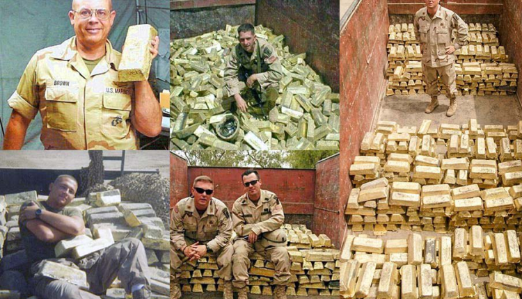 بدلًا عن مخازن الأسلحة السرية الأمريكيون، تفاجأ الجنود والضباط الأمريكيون بمخابئ الذهب والأموال، من بين كنوز الذهب التي اكتشفها جنود البحرية الأمريكية، شحنة تتكون من 2000 سبيكة، زنة كل منها 18 كيلو غرام، وتبلغ قيمتها في ذلك الوقت 500 مليون دولار، عُثر عليها داخل شاحنة في مايو من عام 2003 قرب مدينة القائم على الحدود العراقية مع سوريا.