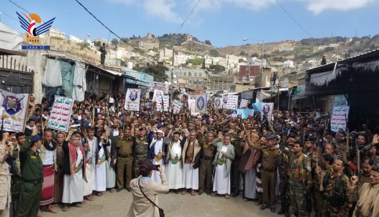مسيرة جماهيرية حاشدة بالمحويت تنديداً بجريمة حرق نسخة من المصحف الشريف