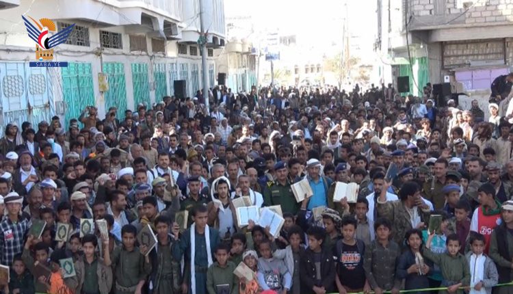 مسيرة جماهيرية حاشدة في البيضاء تنديداً بحرق نسخة من المصحف الشريف